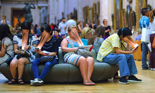在信息時代,越來越多的人患上了手機上癮癥,變身低頭族。法國20歲攝影師安東尼·蓋革創(chuàng)造了一系列詭異照片,將手機變成了《哈利波特》中的“攝魂怪”,吸食著人們的靈魂。安東尼的這組作品將人臉和屏幕連在一起,看起來如同人臉被吸入了手機屏幕。